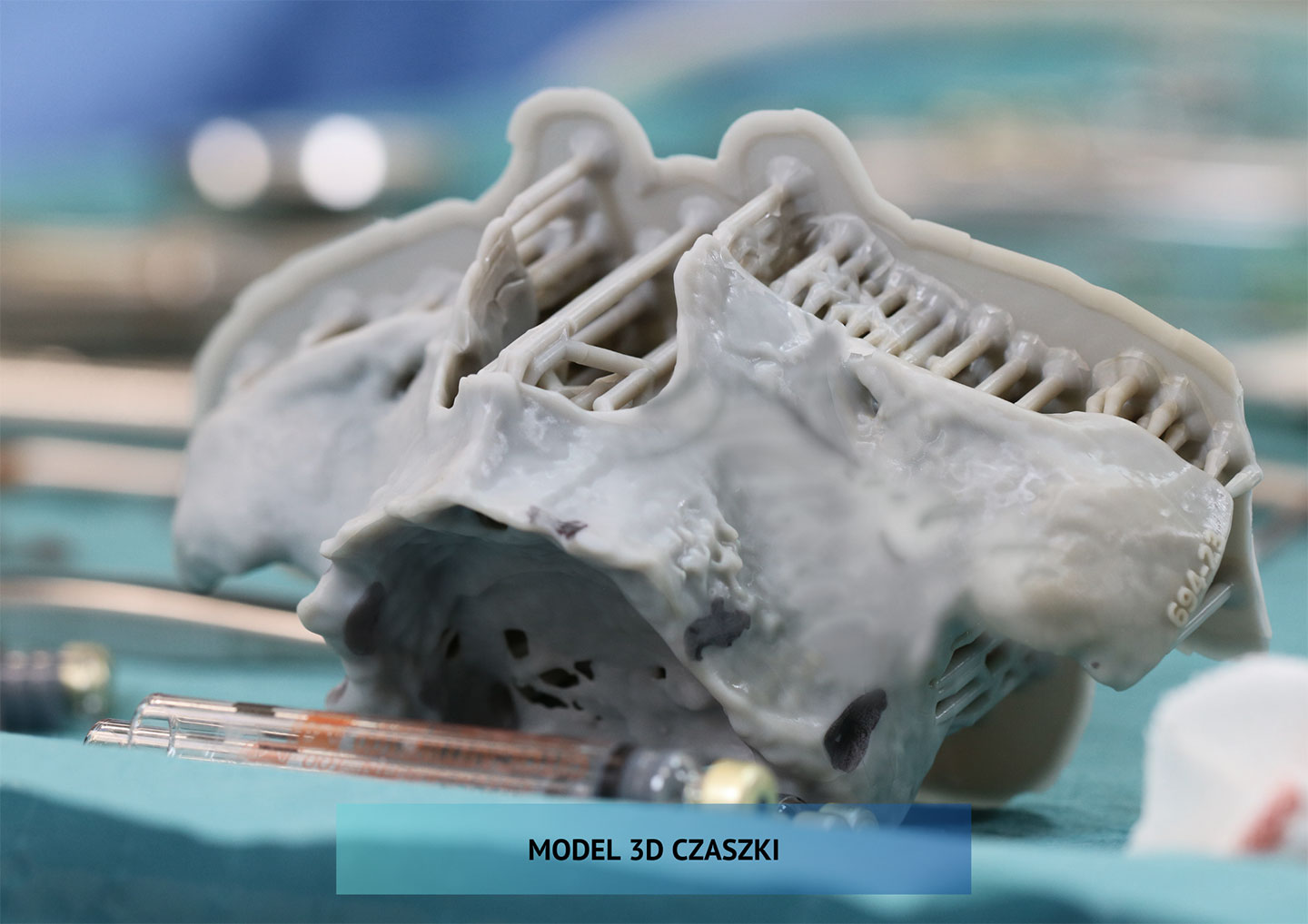 - Projekt i wykonanie implantu – indywidualna tytanowa konstrukcja Integra drukowana w 3D.